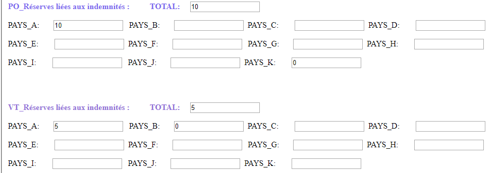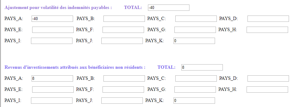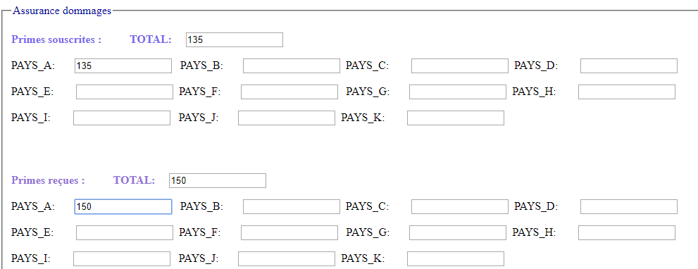 Il est décrit ci-dessous la mise en oeuvre pratique de l'Encadré A6c.I. de la page 300 du Manuel de la balance des paiements et de la position extérieure globale, dédié aux calculs pour l'assurance dommages dans le cas d'un pays A.