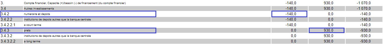 Les résultats de l'imputation dans la Balance des paiements se présentent comme suit :