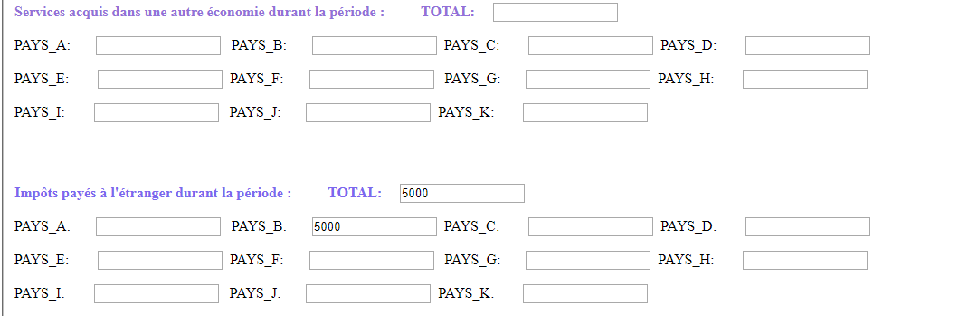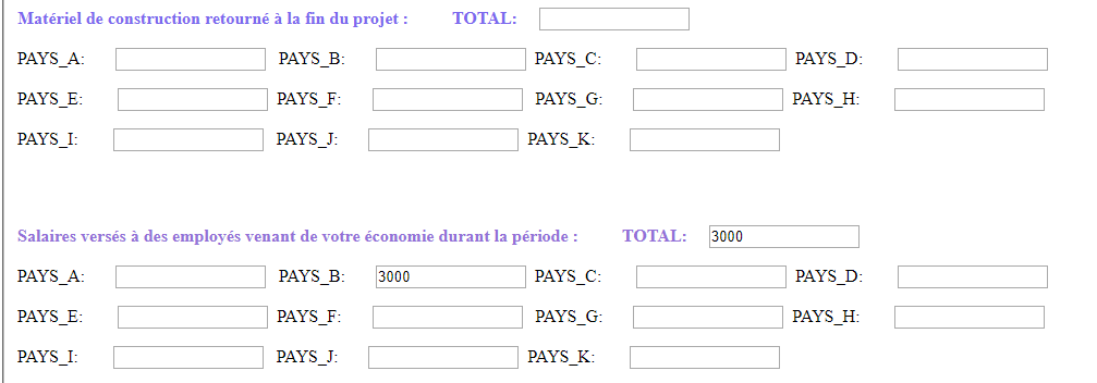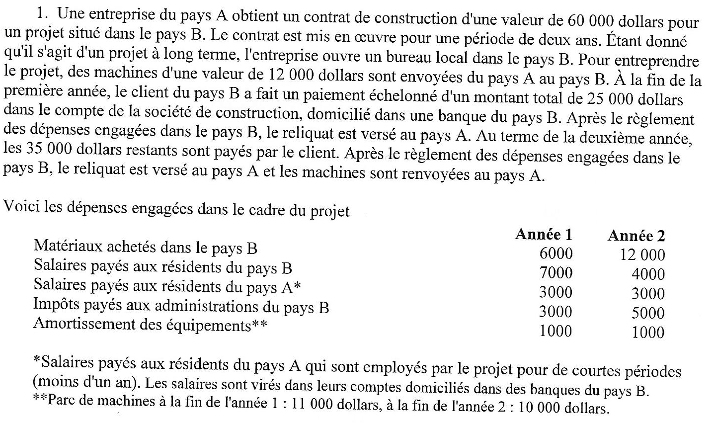 La mise en oeuvre du projet a occasionné des investissements directs dans le pays B, comme ci-après :