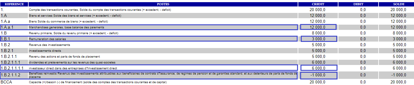 Les résultats de l'imputation dans la Balance des paiements se présentent comme suit :
