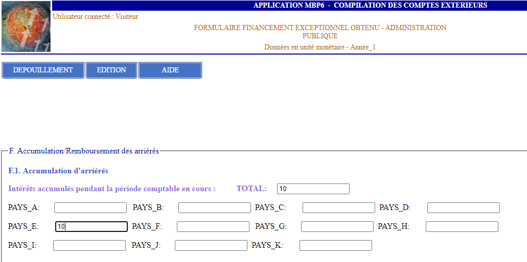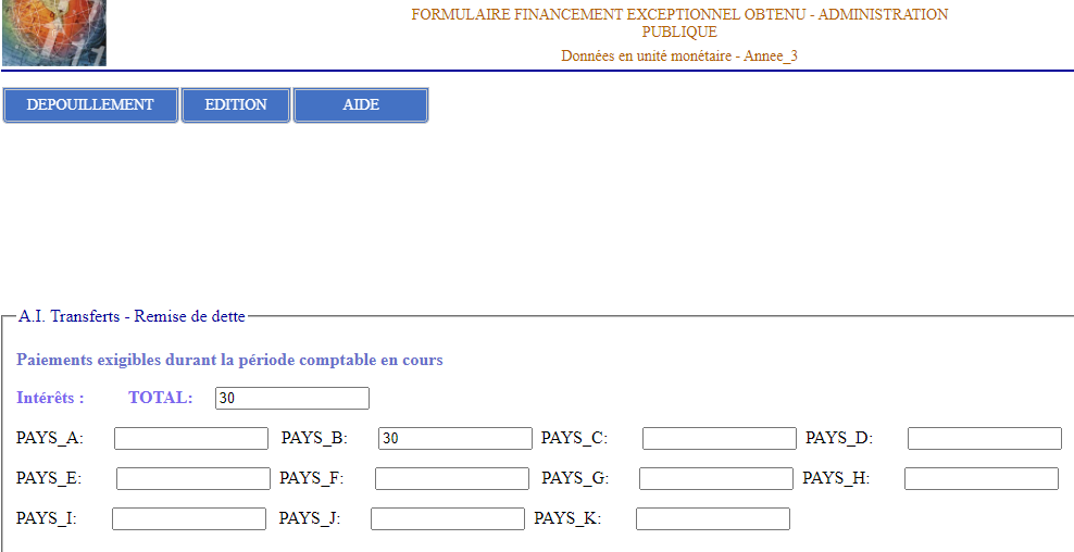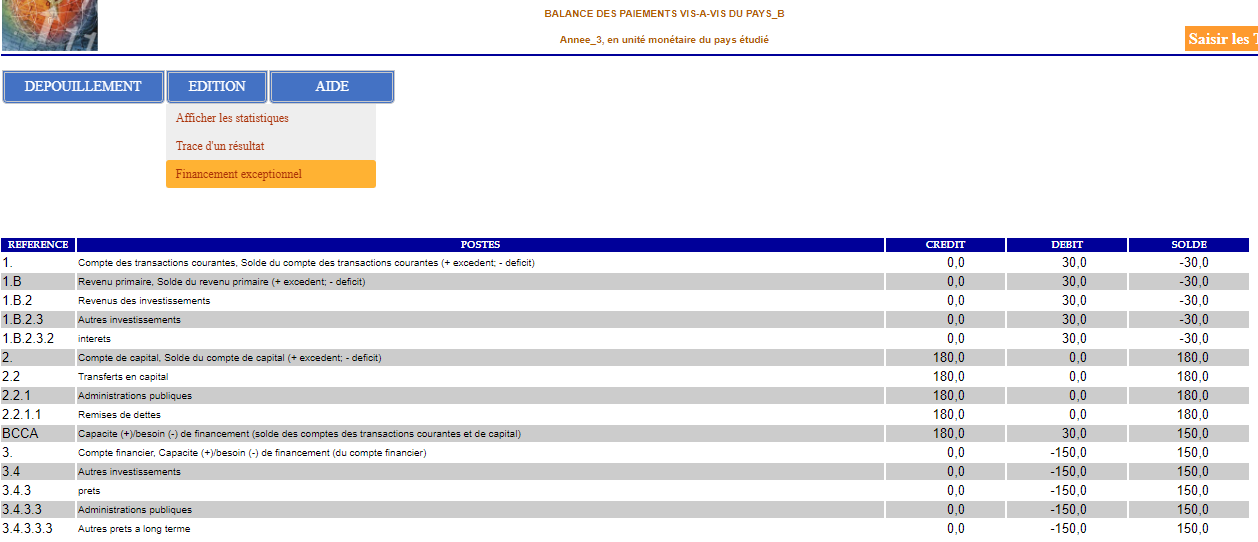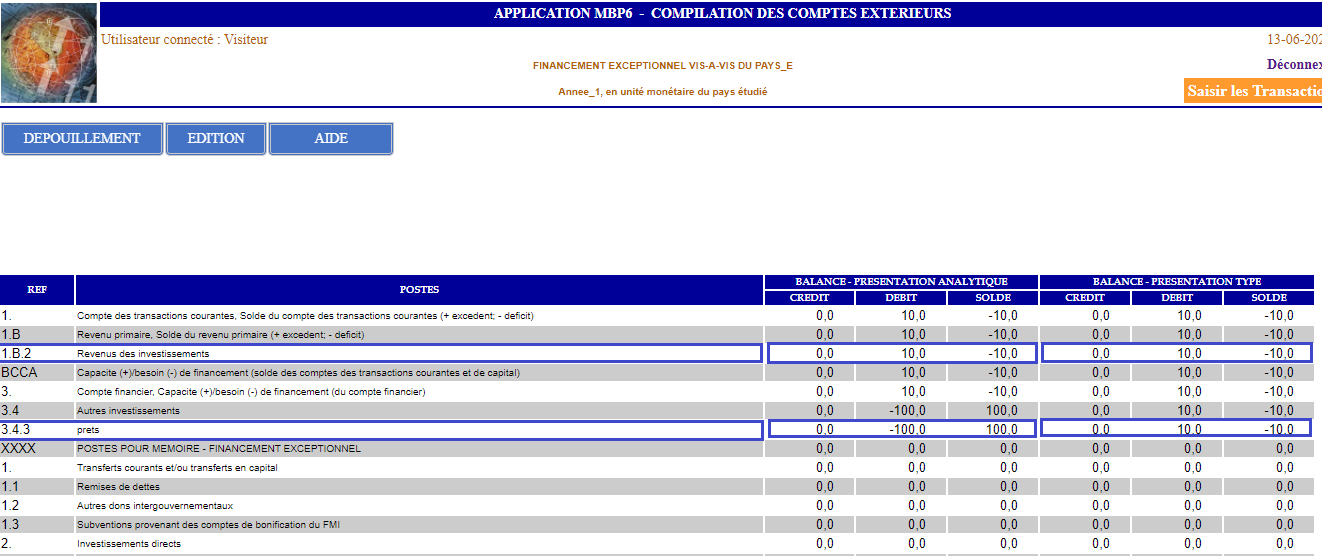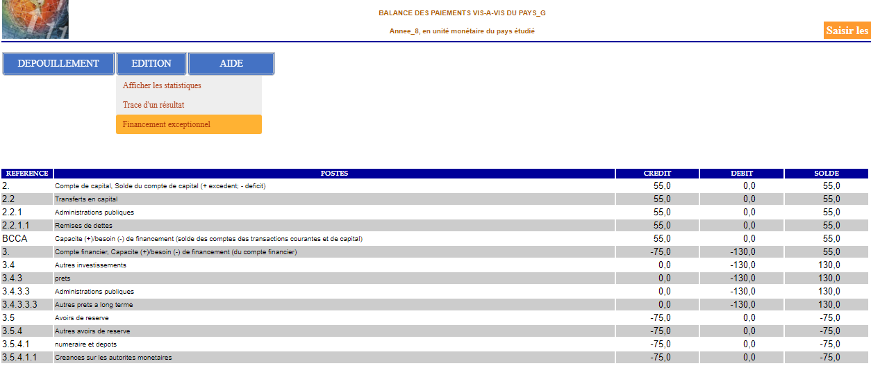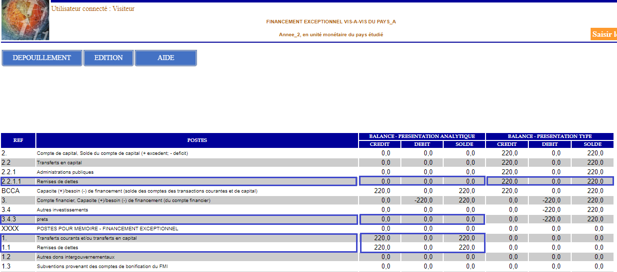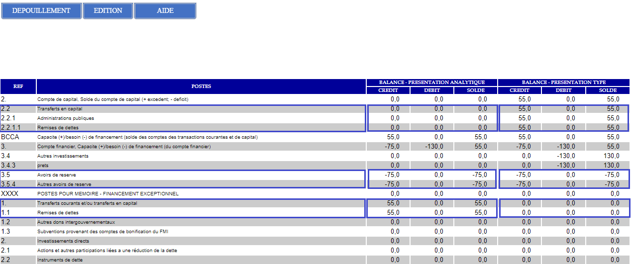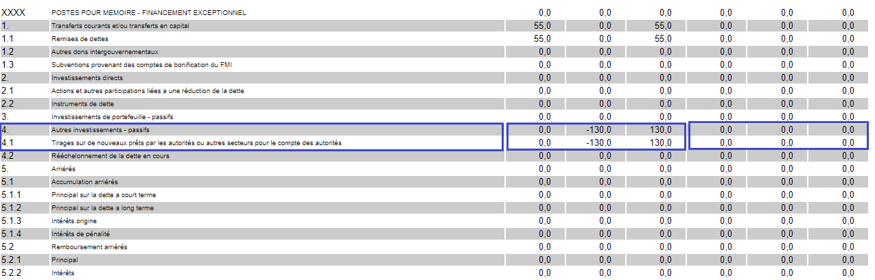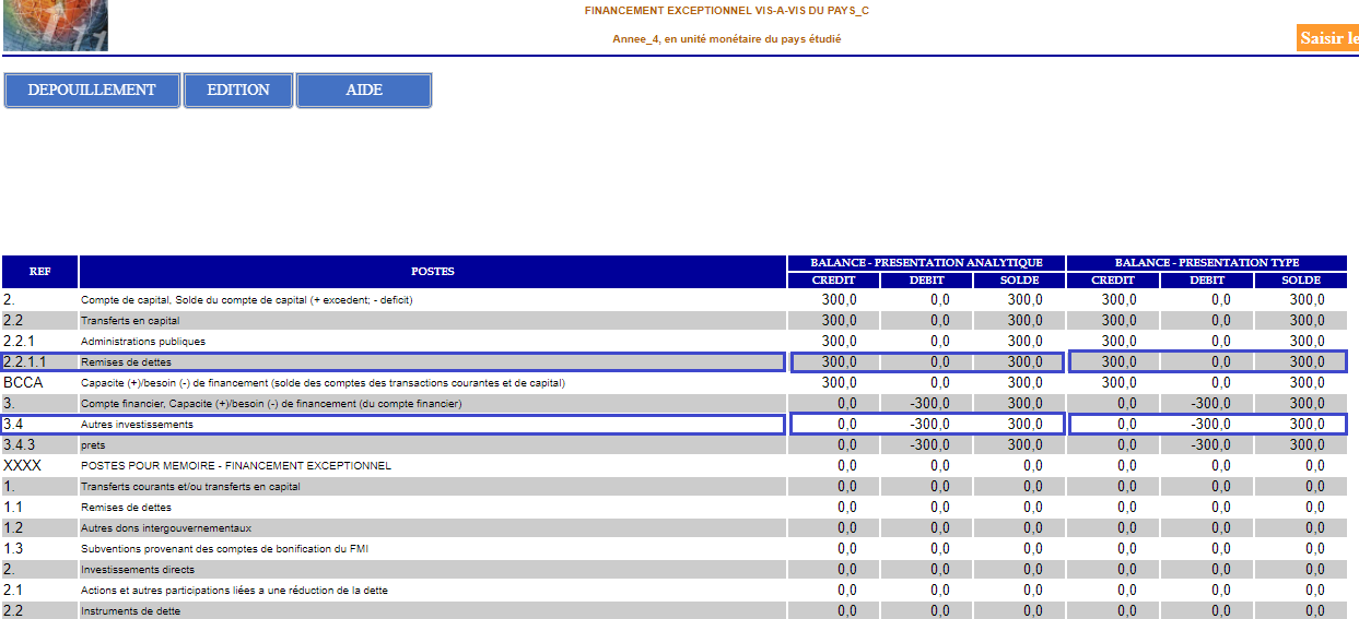 L'Application MBP6 vous offre la possibilité de comptabiliser les opérations de financement exceptionnel conformément aux différents cas répertoriés dans le tableau A1.1. pages 258-260 du manuel méthodologique du Fonds Monétaire International.
