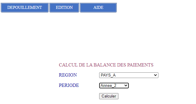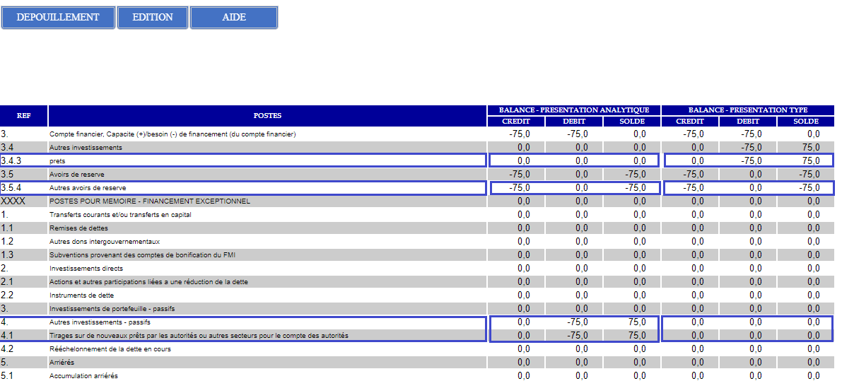Il faut au préalable calculer la Balance des paiements en présentation type. Ensuite, la présentation analytique pourra être générée à la suite de la spécification des éléments de fianncement exceptionnel.