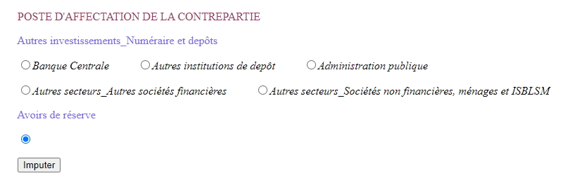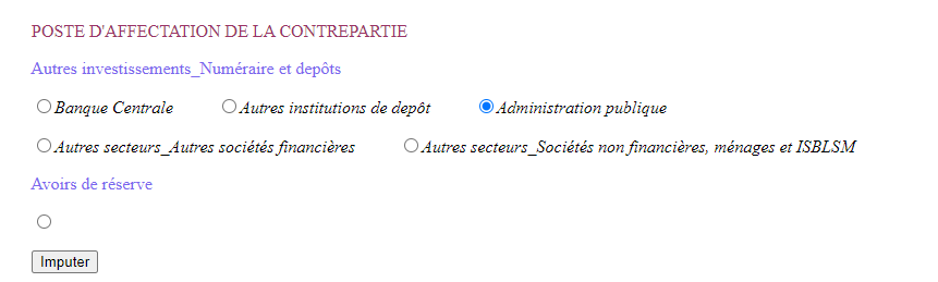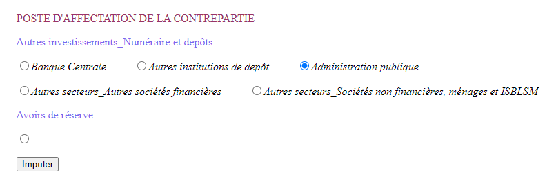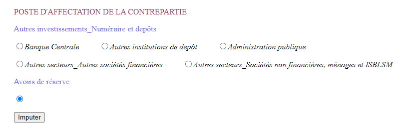 La transaction doit être enregistrée en Balance des paiements présentation-type grâce au formulaire d'enregistrement approprié comme ci-après :