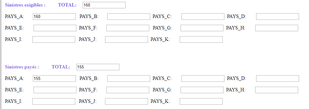 Il est décrit ci-dessous la mise en oeuvre pratique de l'Encadré A6c.I. de la page 300 du Manuel de la balance des paiements et de la position extérieure globale, dédié aux calculs pour l'assurance dommages dans le cas d'un pays A.