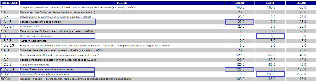 Les résultats de l'imputation dans la Balance des paiements se présentent comme suit :