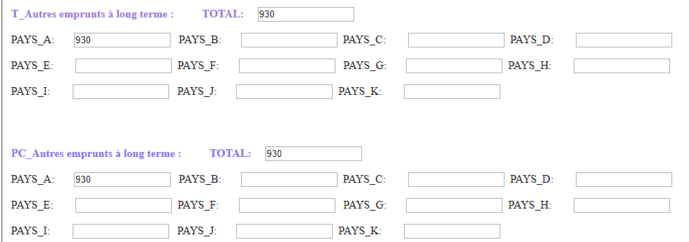 En ce qui concerne la position extérieure globale, les écritures ressortent comme ci-après :