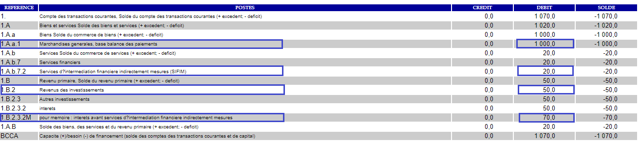 Les résultats de l'imputation dans la Balance des paiements se présentent comme suit :