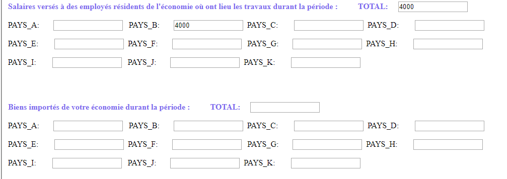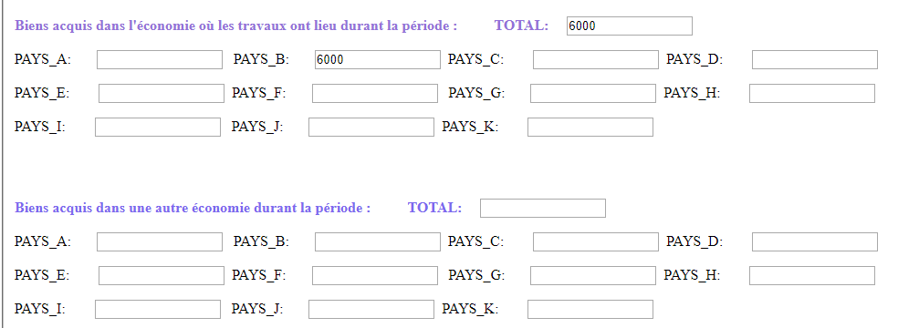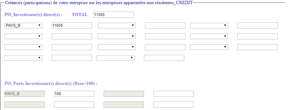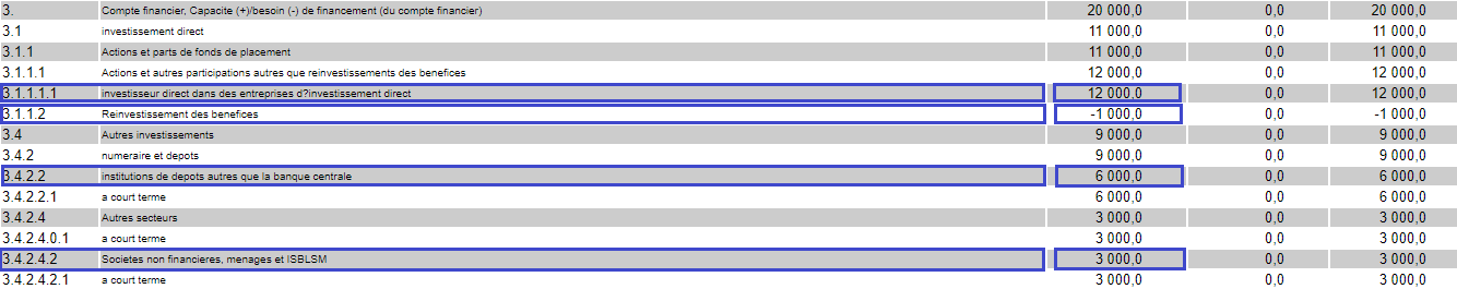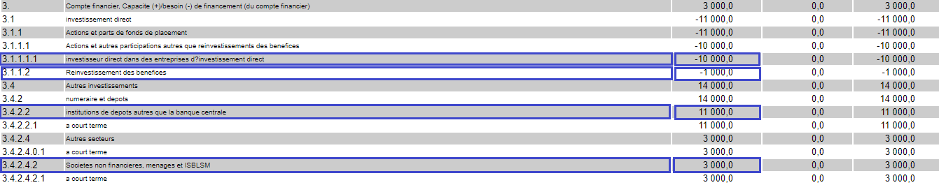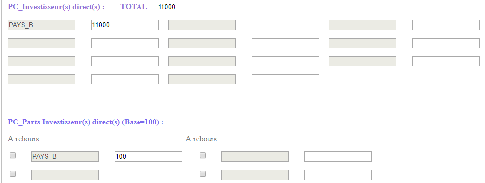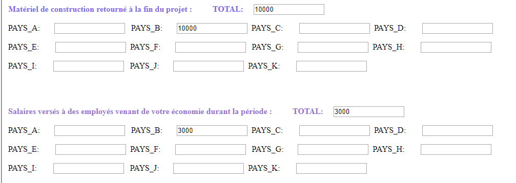 La mise en oeuvre du projet a occasionné des investissements directs dans le pays B, comme ci-après :