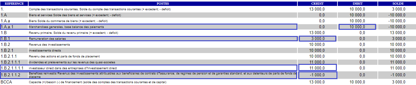 Les résultats de l'imputation dans la Balance des paiements se présentent comme suit :