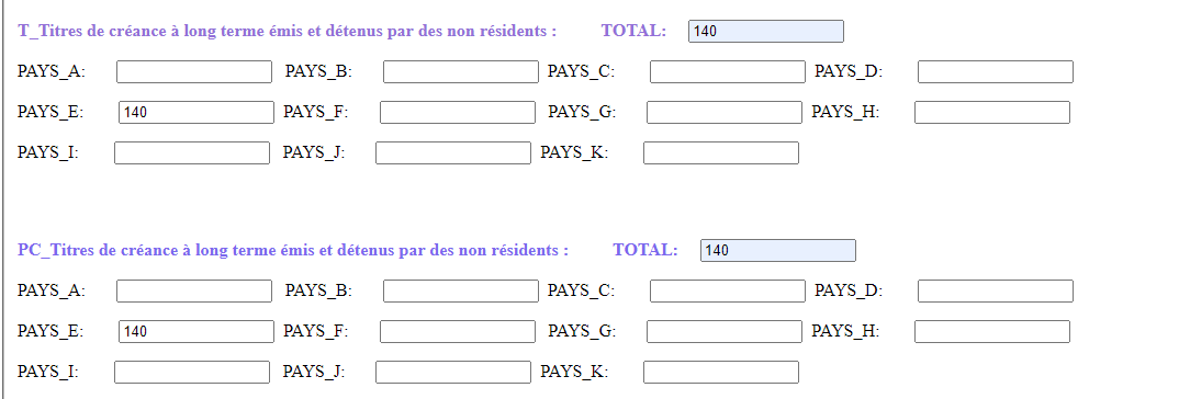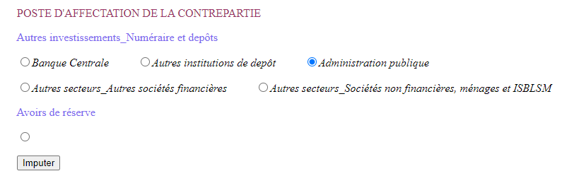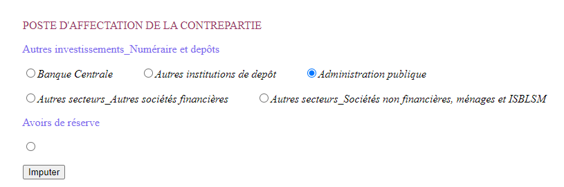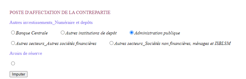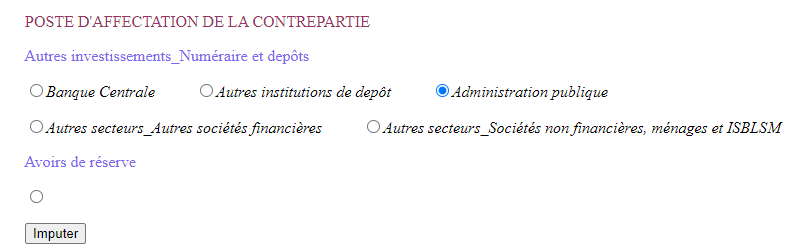 La transaction doit être enregistrée en Balance des paiements présentation-type grâce au formulaire d'enregistrement approprié comme ci-après :