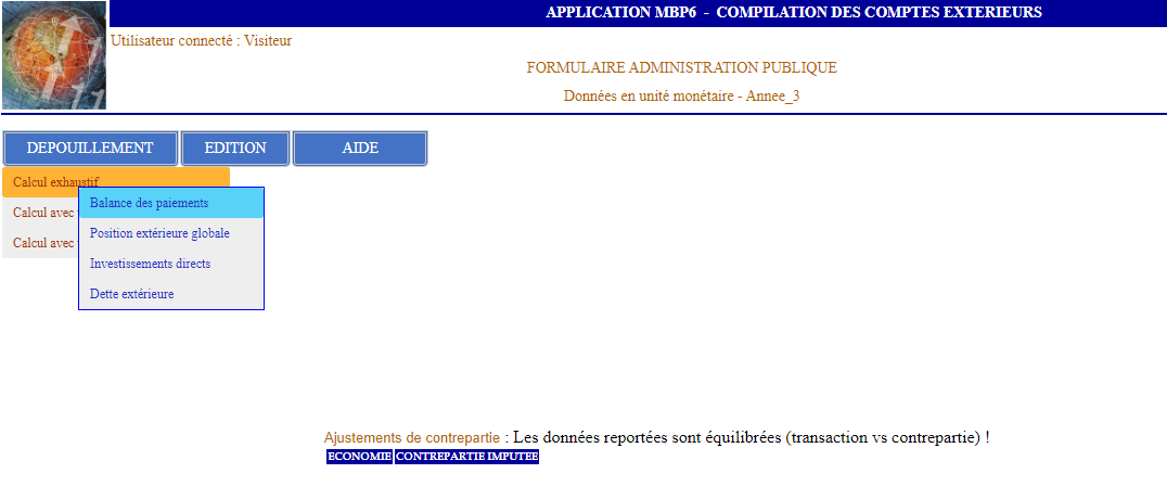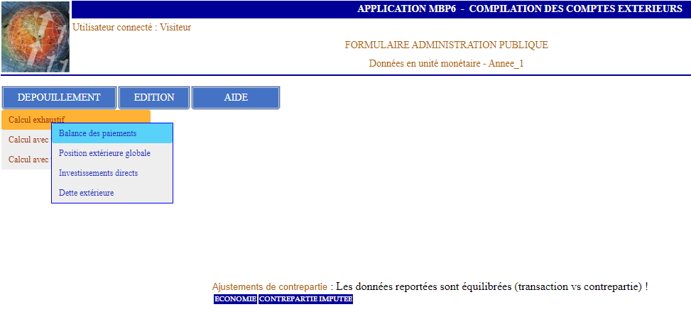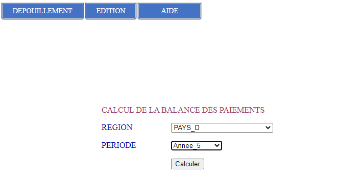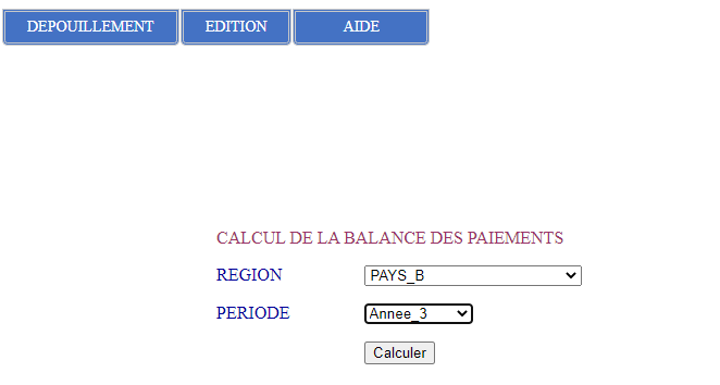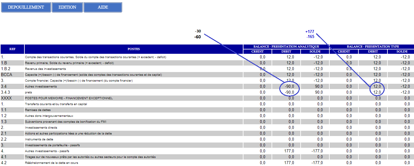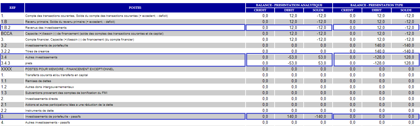 Il faut au préalable calculer la Balance des paiements en présentation type. Ensuite, la présentation analytique pourra être générée à la suite de la spécification des éléments de fianncement exceptionnel.