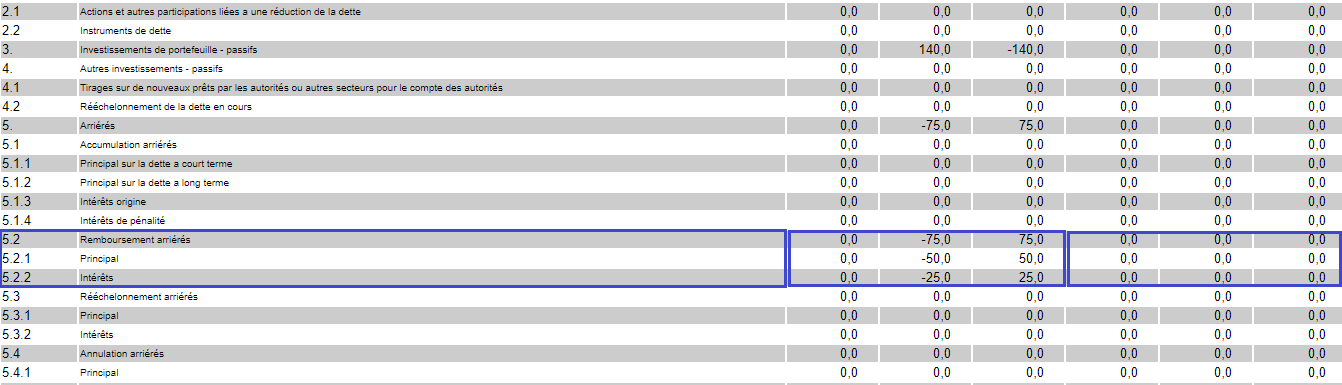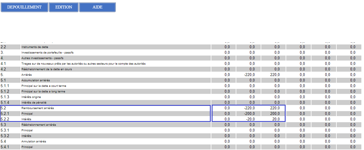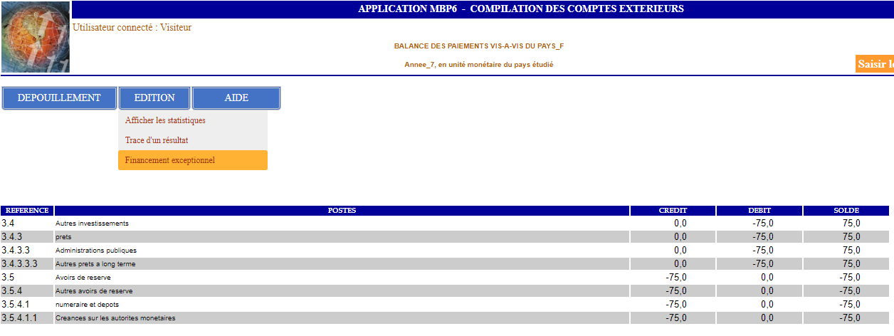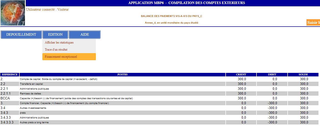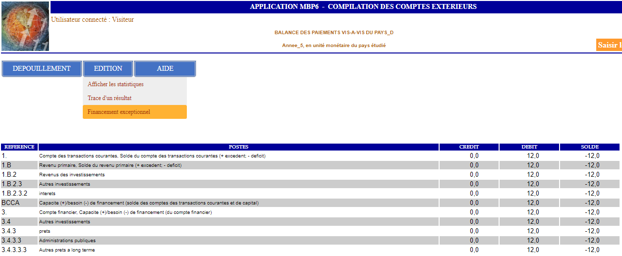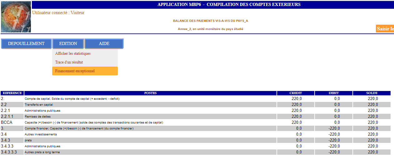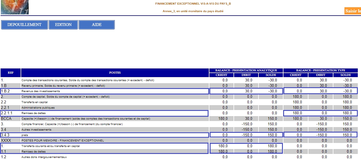 L'Application MBP6 vous offre la possibilité de comptabiliser les opérations de financement exceptionnel conformément aux différents cas répertoriés dans le tableau A1.1. pages 258-260 du manuel méthodologique du Fonds Monétaire International.