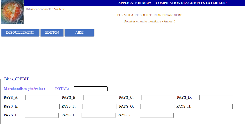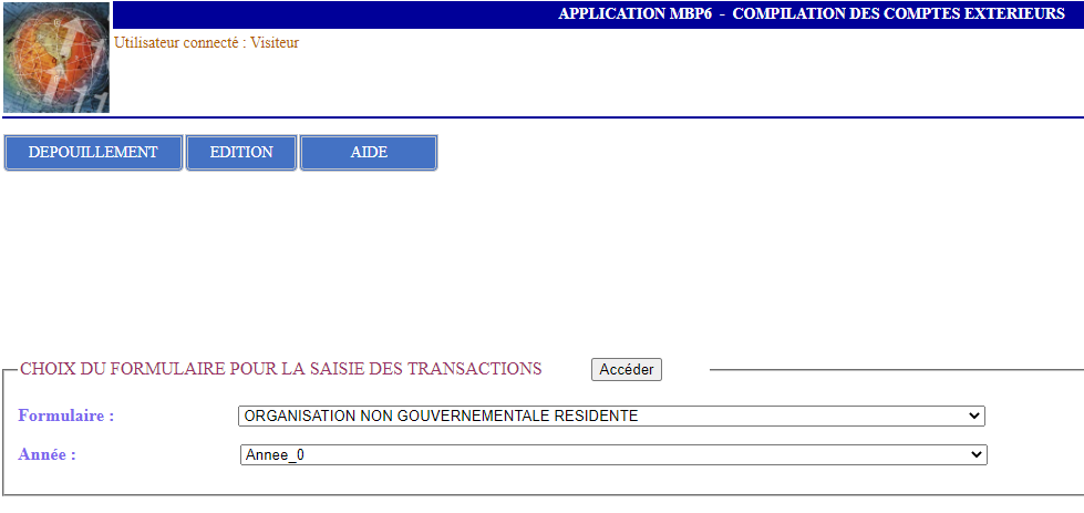La saisie des données dans l'Application MBP6 se fait sur la base de formulaires élaborés sur la base du Guide du MBP6. Les formulaires sont les suivants :