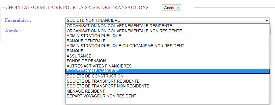 Vous pouvez accéder à ces formulaires en cliquant sur "Transactions". Le module des formulaires s'affiche comme ci-après :